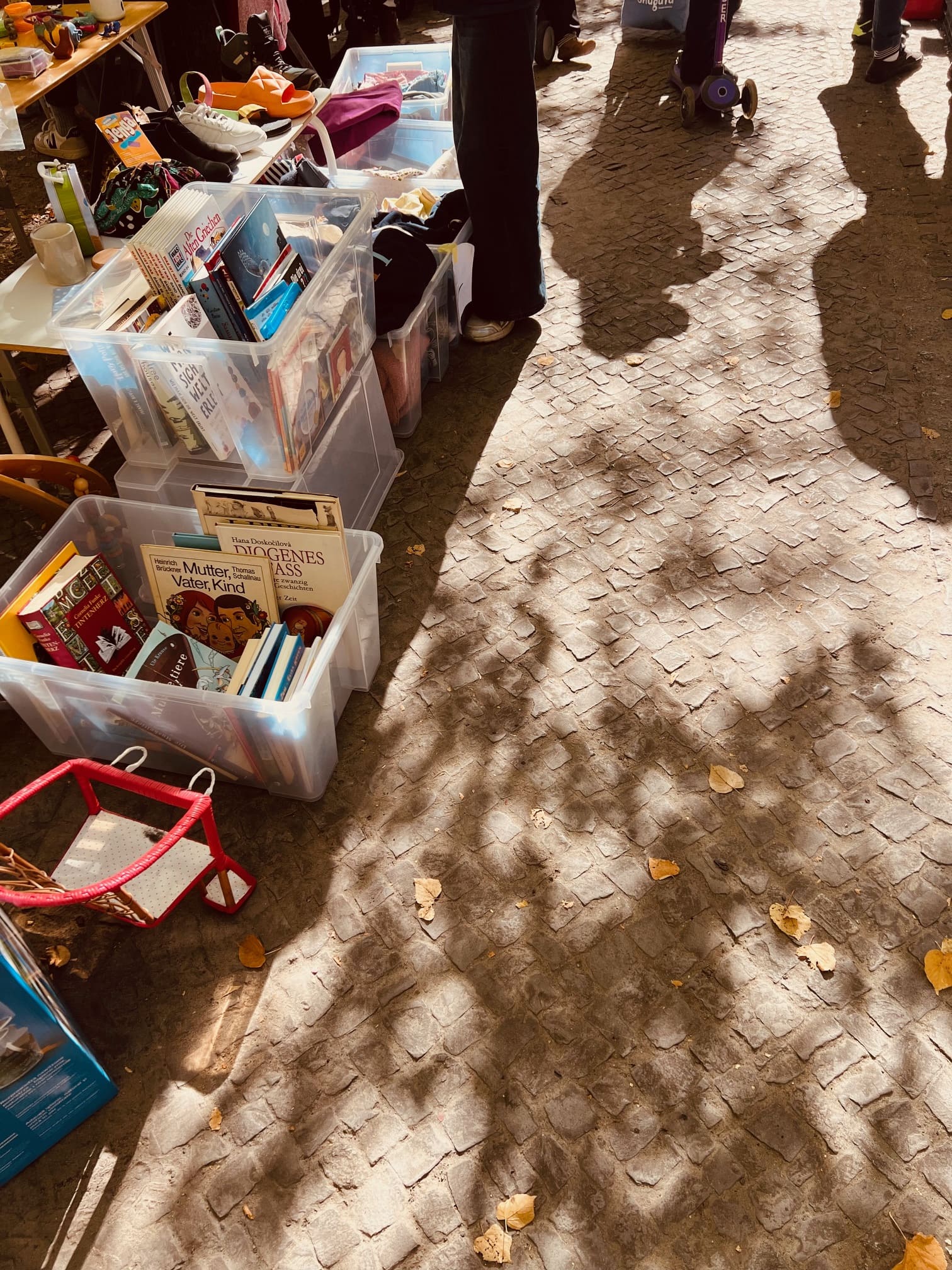 Auch in diesem Jahr freuen wir uns über einen rundum gelungenen und erfolgreichen Schulflohmarkt 2025! Das Herbstwetter hat mitgespielt und toll, dass so viele kleine und große Besucher*innen den Vorderhof gefüllt haben.